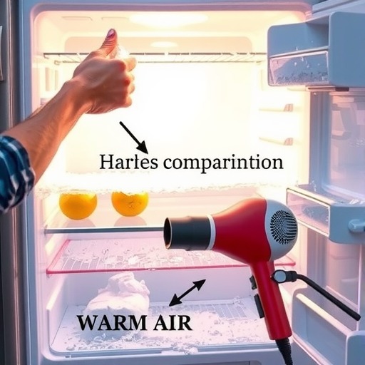 如果您急于除冰,可以选择使用吹风机来加速解冻过程。将吹风机调至低温档,并将其对准冰箱内壁。但要注意不要直接对准冰箱内部,以免造成损坏。您可以同时使用毛巾吸走融化的水,以加快除冰速度。