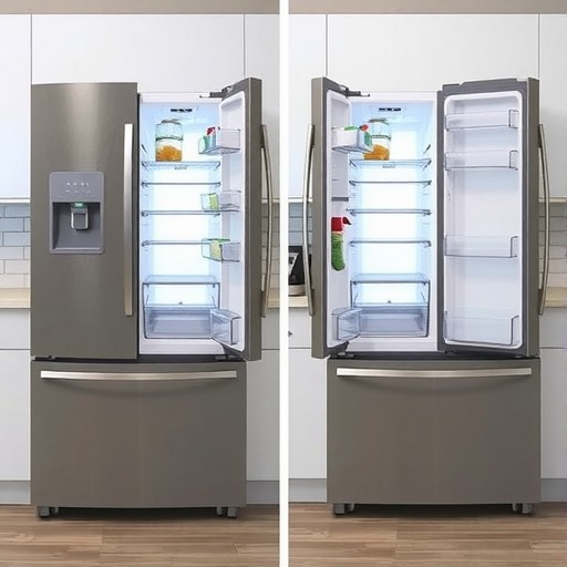 综上所述,十字开门冰箱和对开门冰箱在外观设计、容量和使用面积、温控和能效以及使用便利性和价格等方面存在一些区别。消费者在购买时应根据自己的需求和偏好选择合适的冰箱类型。无论是十字开门冰箱还是对开门冰箱,都可以提供高效、便捷的冷藏和冷冻功能,为我们的生活带来便利。