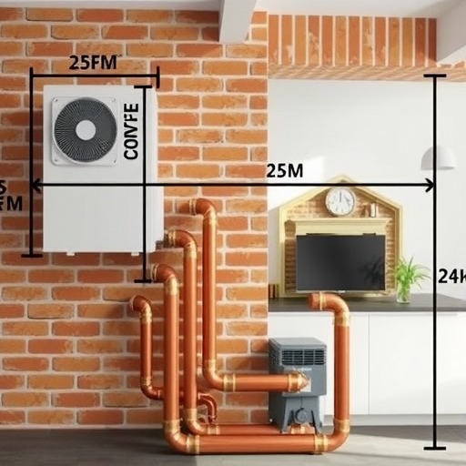 假设你的房屋是单层,室外机安装在屋顶上,距离室内机约25米。你可以选择直径为4厘米的铜管,这种管道可以传输足够的冷媒量,并且具有较好的耐腐蚀性。然而,如果你的房屋是多层,室外机安装在墙面上,距离室内机约50米,你可能需要选择直径更大的管道,以确保冷媒的正常传输。