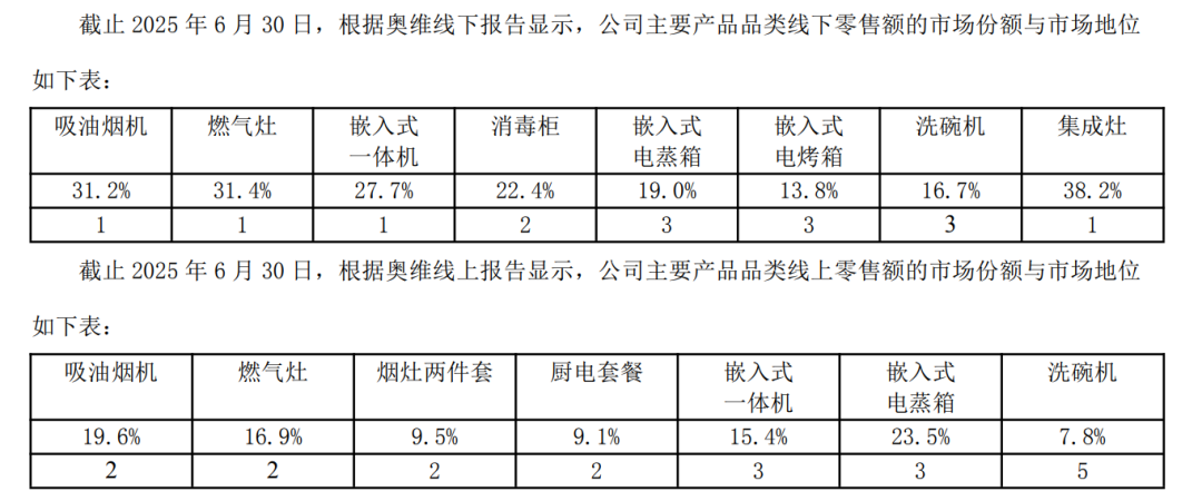 但值得注意的是,老板电器2025年上半年线下零售额市场份额油烟机为31.2%,燃气灶为31.4%,线上分别为19.6%和16.9%。