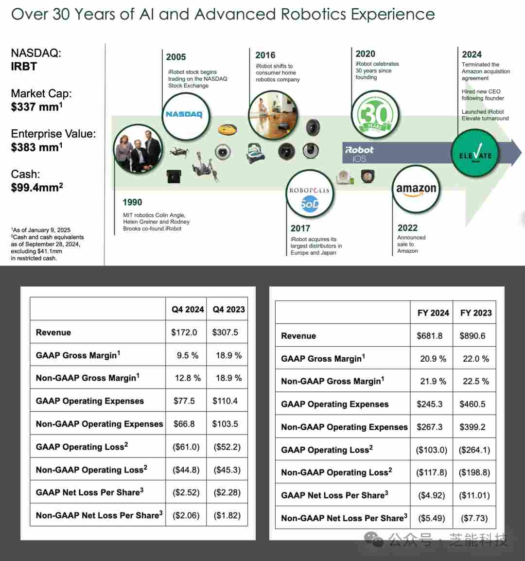 此前,2022年亚马逊拟以17亿美元收购iRobot的计划因欧盟反垄断审查未获通过而告吹。联合创始人兼CEO科林·安格尔辞职,新任CEO盖瑞·科恩提出“iRobot Elevate”五点转型战略,强调降低成本、提升毛利率和优化现金流。