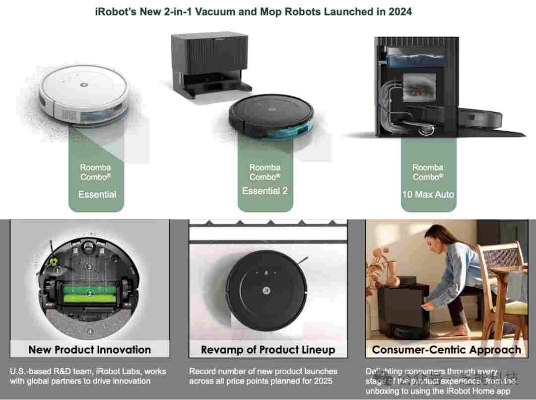 ◎新产品发布:2025年3月,iRobot推出了多款新产品,包括Roomba 105 Vac(吸力提升70倍)、Roomba 205 DustCompactor(创新除尘技术)、以及Roomba Plus 405/505组合机器人(配备AutoWash基座)。
