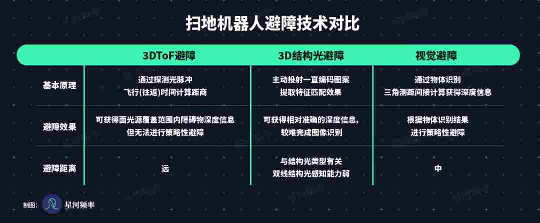 传感器技术的另一项核心应用是避障,使机器人能避免与障碍物发生碰撞。市场主流避障方案包括 3DToF 避障、视觉避障、3D 结构光避障等多种方案。