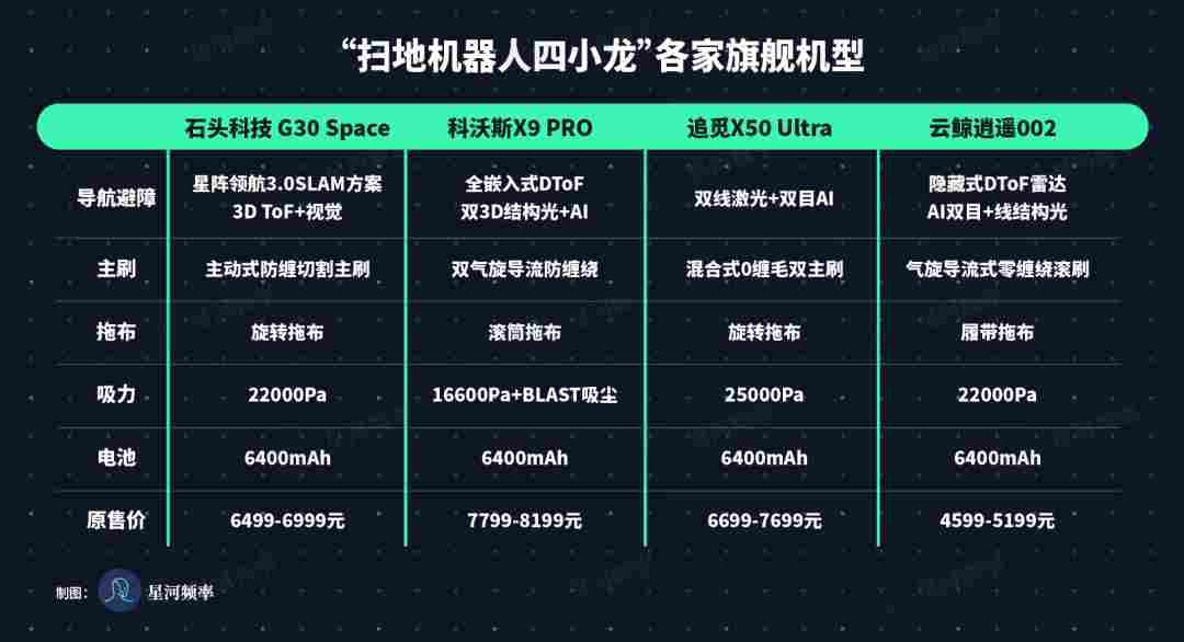 除了石头的旗舰机加了折叠机械臂,这四款产品给到用户的性能感知差别并不大。