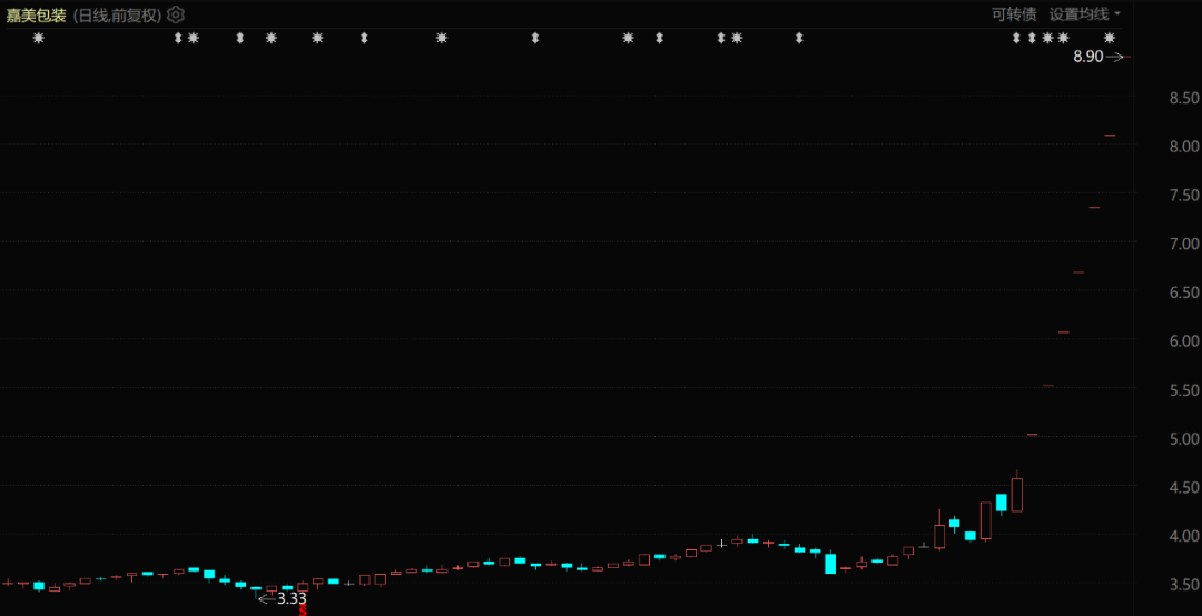 消息一出,嘉美包装立刻收获了六个涨停。