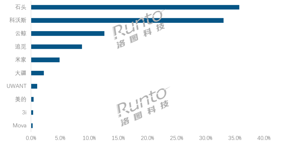 石头以35.8%的线上市场销额份额位居第一,其高端机型P20 Ultra Plus系列在导航避障与清洁性能等核心技术上具有一定优势,为品牌内部贡献了57.5%的销额。