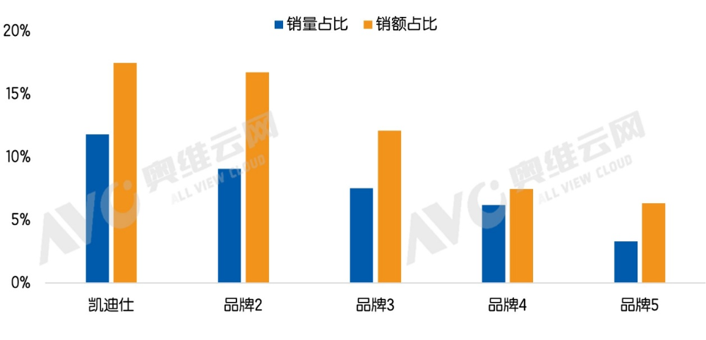 数据来源:奥维云网(AVC)线上监测数据(TOP5品牌选取为销额占比降序)