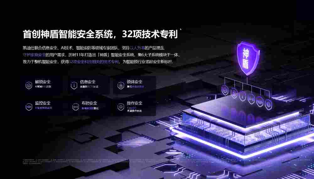 智能门锁的本质是安防产品,安全不能只靠“一把好锁芯”。凯迪仕在2014年便启动“神盾智能安全系统”研发,联合信息安全、AI技术、智能安防等领域专家团队,坚持以人为本的产品理念,守护家庭安全的用户需求,历时11年打造出「神盾」智能安全系统,集6大子系统模块于一体,致力于整机智能安全,让凯迪仕产品不仅通过市场的检验,更通过时间的考验。