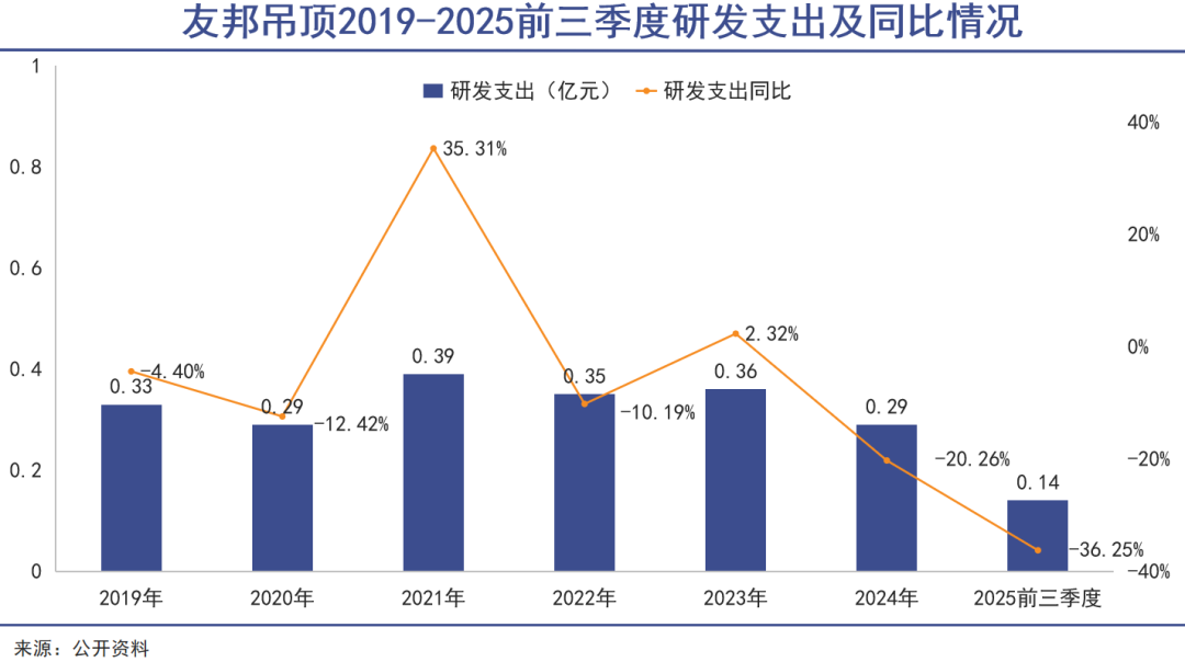 以友邦吊顶为例,此前其凭借MSO模块化技术领先行业,但近年来在研发创新上逐渐掉队。