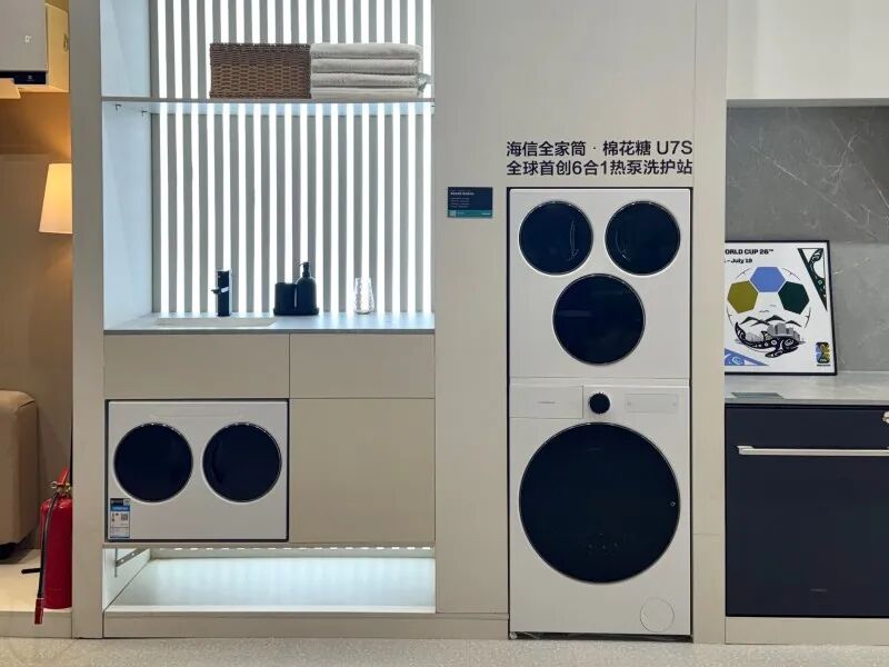 在刚刚结束的2026中国家电及消费电子博览会(AWE2026)上,家电巨头海信带来了全家筒·棉花糖U7S四筒洗衣机,号称能够实现12kg大容量洗衣、8kg热泵式烘干、1kg婴儿/宠物用品洗烘、1kg内衣洗烘、3kg洗鞋、3kg护鞋六大功能,再一次把洗衣机关于滚筒数量的军备竞赛拉到了一个新高度。